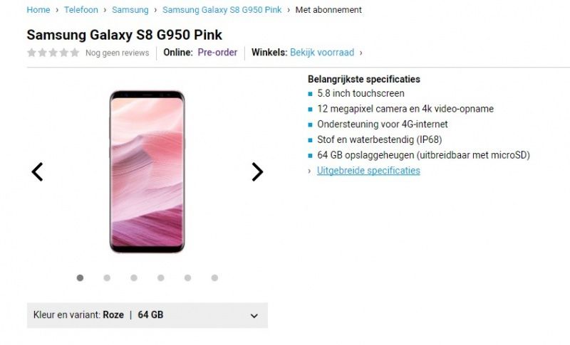 Rose Pink of Galaxy S8 was exclusive for Taiwan only, then it arrived in North America, but from now you can purchase one in Europe also. Dutch retailer Belsimpel liste phone on the website. Pink variant carry price tag of €599, which currently translates to $720. Device is still in pre-order phase and there is no information when device will begin shipping.
