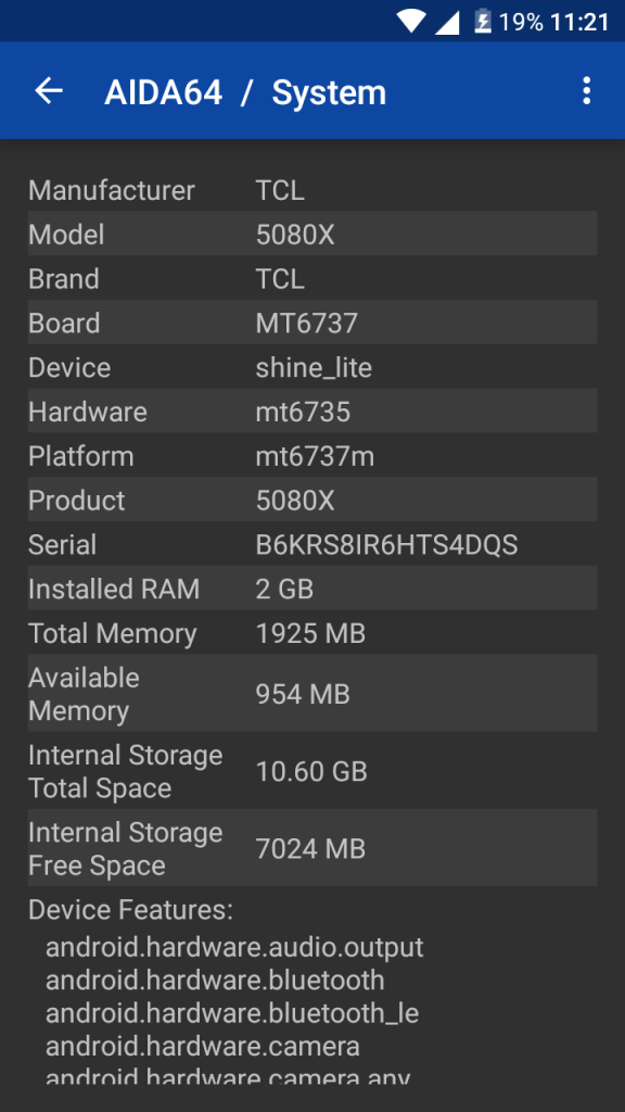 Another important thing for every modern smartphone is its chipset. Because of the price, the Shine Lite doesn’t really shine in this area with the MediaTek MT6737 CPU. It is a quad-core CPU with Cortex-A53 cores clocked at 1.3 GHz. This chipset has become standard for the lower class, and offers a good price to performance ratio. ARM Mali-T720 MP2 is in charge of the graphics. This device performed amazingly when launching standard apps such as Facebook, Viber and Chrome, but when gaming it is really obvious that this is a lower class chipset. Overheating and fast battery consumption are evident after longer gaming. There is 16GB storage and 2GB of RAM which is just enough for fluent work and good multitasking. On the AnTuTu benchmark, it scored 28.440.Another thing which is really welcome and is indeed a great plus is definitely the fingerprint scanner. It is located on the back, works pretty fast, and represents a nice level of security. When it comes to sensors, we have: a gyroscope, a proximity sensor and a compass. This phone comes with preinstalled Android v6.0 Marshmallow firmware. Alcatel have not changed the stock Android too much, so it all works fluently and everything is only a few taps away.