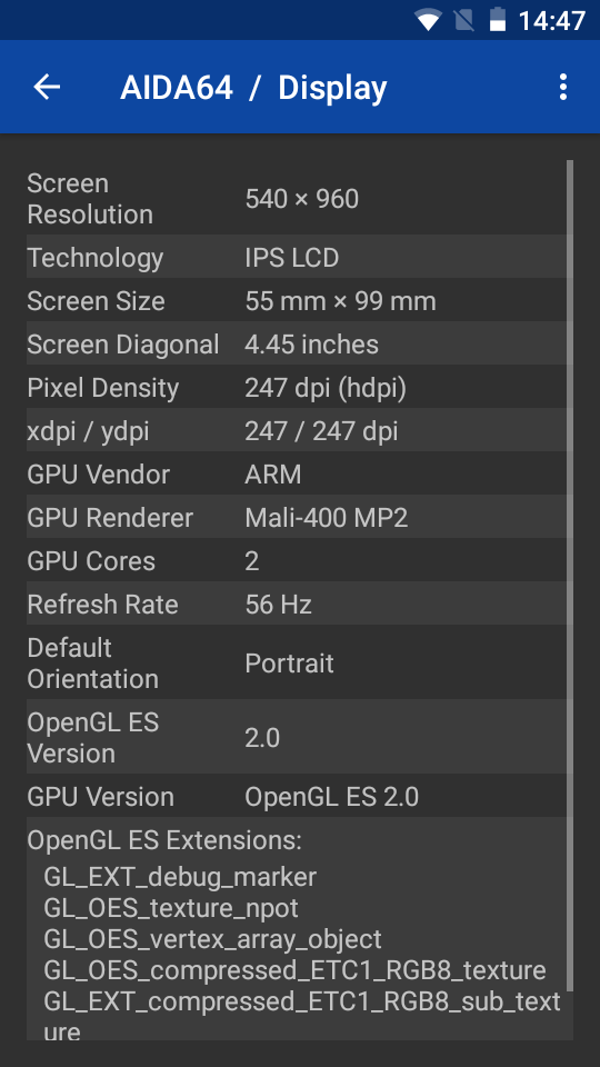 As this is the lowest segment of the market, we really cannot expect too much. Although the diagonal is not so small, the resolution of the display is merely QHD (960 x 540 pixels) that we could see in some devices as far back as in 2011 (HTC Sensation). However, things are not that bad since we’ve seen devices with bigger diagonal and the same resolution – and we survived. QHD resolution combined with a 4.5” diagonal results in 245 pixels per inch, which is the lowest point below which there is no point in going, in terms of sharpness and quality of the views. Matrix used in this display is IPS, which guarantees pretty realistic color reproduction and decent visibility on the sunlight.