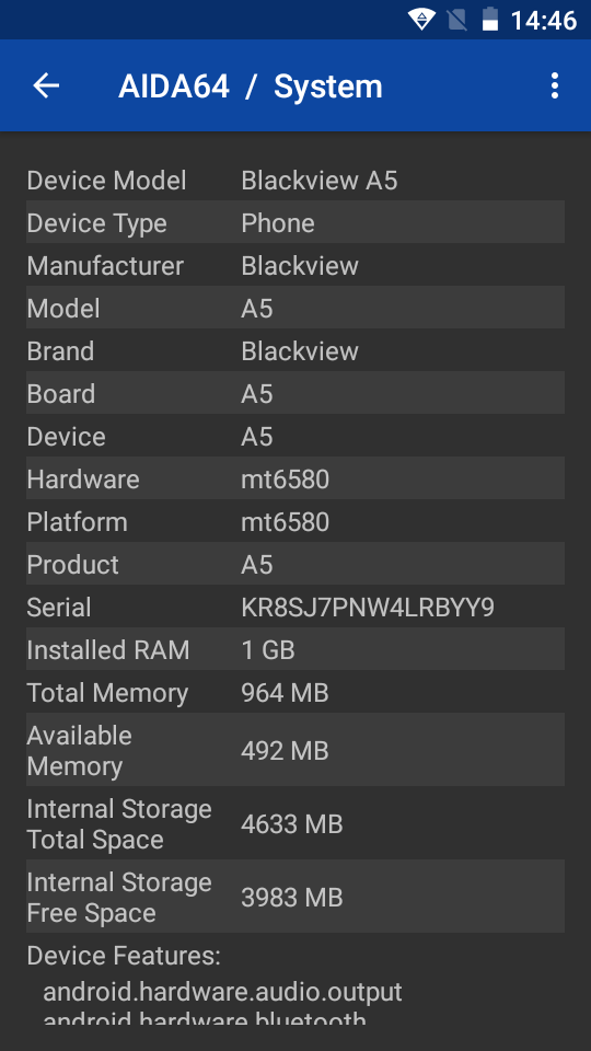 The display is capable of showing up to 16 million colors, and the views are pretty good, especially if we consider the price which is below $40. Surfing the web is a pretty nice experience on this display, although anything below 4.5” would be a choking point in terms of web browsing. The device does not have an ambience light sensor which would adapt the brightness of the display in accordance to the light conditions, so all brightness parameters need to be set manually. The bright side of a smaller device is that one handed use is very easy, which is also the case with the Blackview A5. No modern technologies were implemented in order to improve the display.