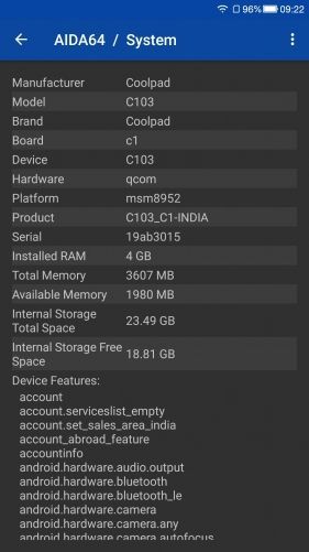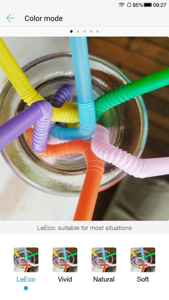 This panel is built in IPS LCD technology and it can reproduce more than 16 million colors which are, as usual, very nicely reproduced, pretty realistically and with no oversaturation. However, if you don’t like the factory settings of the Coolpad Cool1, you can choose among the following Color Mode settings: