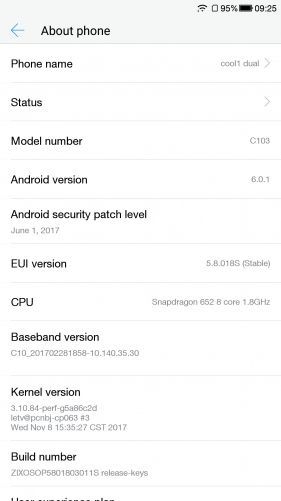The last component here is the memory. Coolpad Cool1 has 4GB of LPDDR3 RAM, and 32GB of internal storage memory. The main disadvantage here is that there doesn’t exist a microSD card slot (not even as a hybrid SIM slot), so you’re stuck with only 32GB. We say “only” because, taking into account that the Cool1 can take 4K videos and applications are getting bigger over time, 32GB very quickly can become too little.