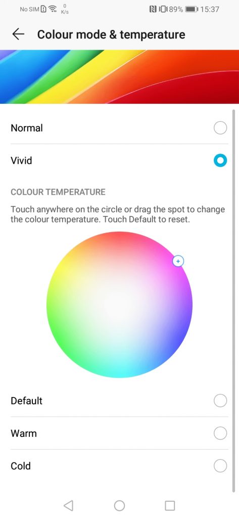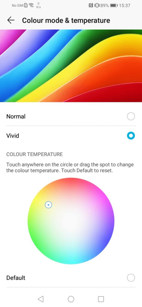 The screen is built in IPS LCD technology which is expected of a phone in this price range, but Huawei didn’t take away color calibration from us. There are Normal and Vivid color modes, and you can set your display tones manually.