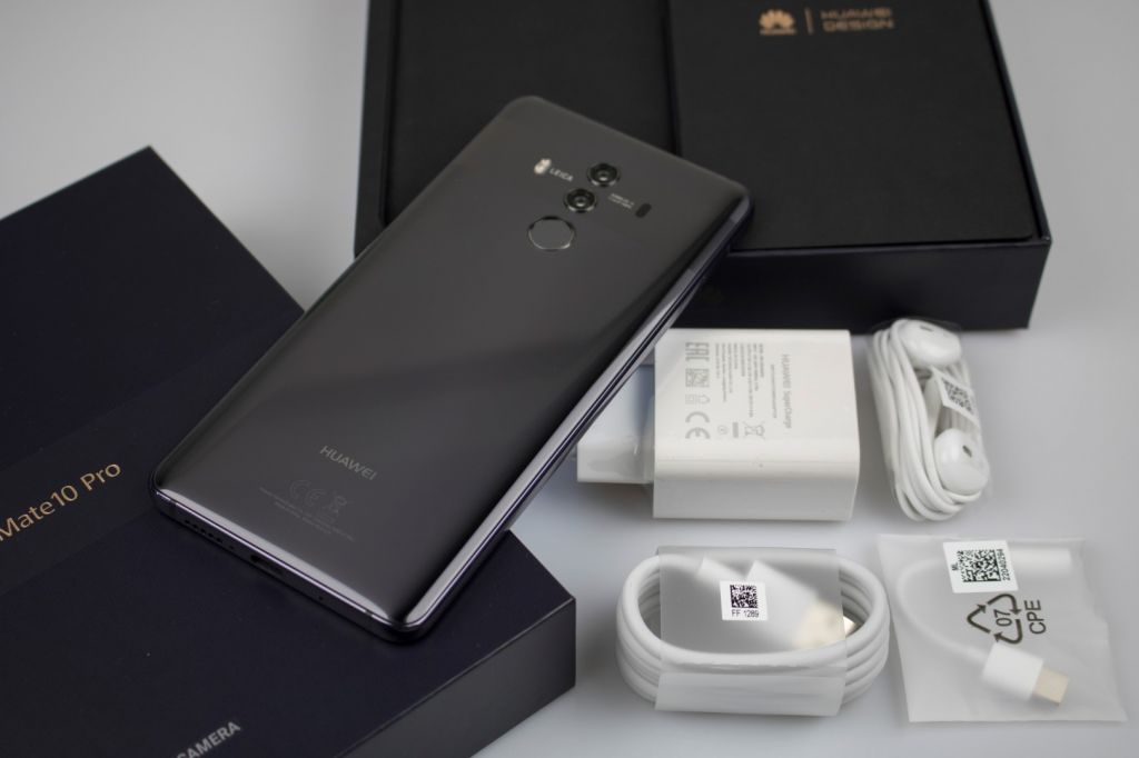 Another big news in the Mate 10 Pro is the new chipset – the Kirin 970 which brings machine learning to Huawei devices, but more on that a little bit later. Even before we got to test this device, the DxO Mark placed the quality of the main camera among the best 3 out there, side by side to the iPhone X and Google Pixel 2. Alongside the Pro version, Huawei also shipped out the Mate 10 and the Mate 10 Lite with different specifications. The Pro version comes in several color options: Midnight Blue, Mocha Brown, Pink Gold and Titanium Gray which we have for our test. Inside the factory box, we have: a Huawei fast charging adapter, USB Type-C cable, Type-C headphones, Type-C to 3.5mm adapter, a SIM tray tool, some paperwork, and as icing on the cake, a gel case for your Mate 10 Pro.