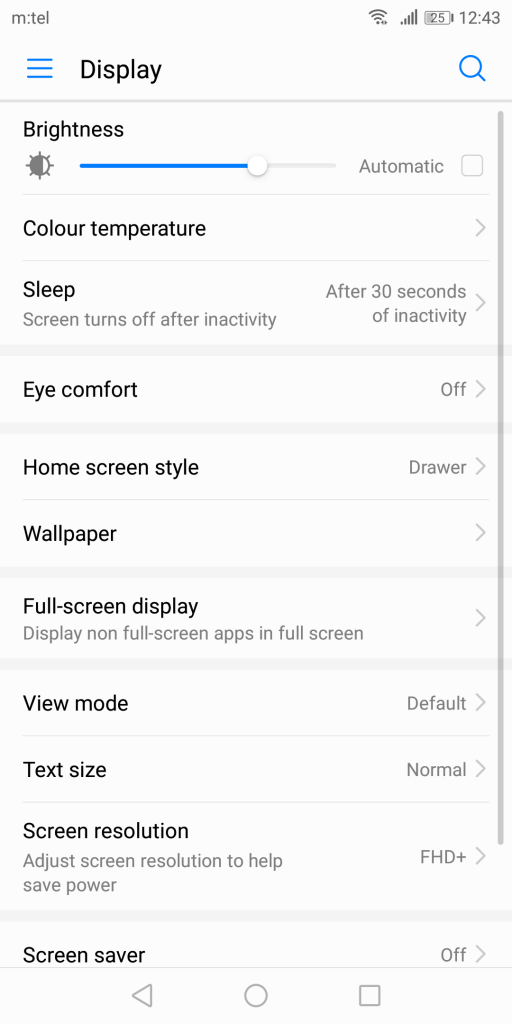 This whole story about the display is complemented and enhanced by the HDR10 certificate which is one of the must have options in the top class. Although HDR materials are scarce, the HDR10 compatibility represents an excellent future proofing point, and it is definitely not an overkill. Additional options offer the option to change the resolution of the display (as seen on the Samsung devices) to HD+ (1440 x 720) in order to reduce the battery consumption, and the Eye Comfort mode is also there as something that will help you reduce the stress on the eyes while using the device in the dark. View Mode offers an option to adjust the size of the displayed material, including the size of the text, which will certainly be very helpful to persons having issues with seeing. The display is protected by the Corning Gorilla Glass 5, which protects the front and the back of the device. Oh yeah, we must not forget this! The Always On display would be amazing, but sadly the Mate 10 Pro does not support this function.