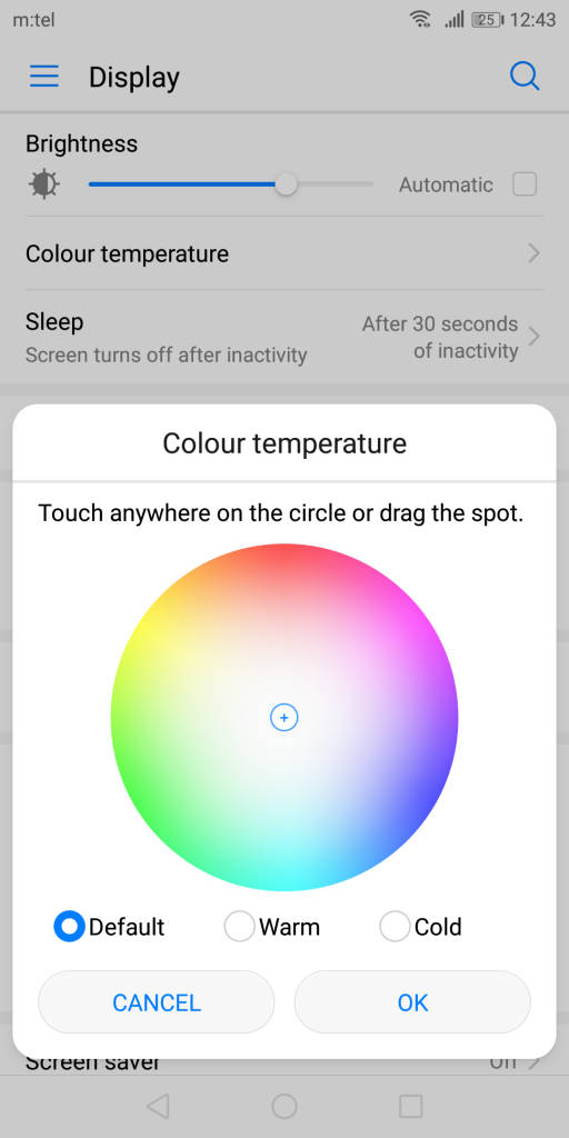 Speaking of the color reproduction and the brightness of the display, the values depend on preset settings: Normal or Vivid. In the Normal mode, the brightness can go up to 440 nits, while the Vivid mode offers, well, more vivid colors, and the brightness on the direct sunlight, alongside the Auto mode can go up to 720 nits. The visibility on the sunlight is great, which is to be expected of an AMOLED display. It is also possible to adjust the color temperature, so next to the classic color display, you can go with slightly colder or warmer shades.