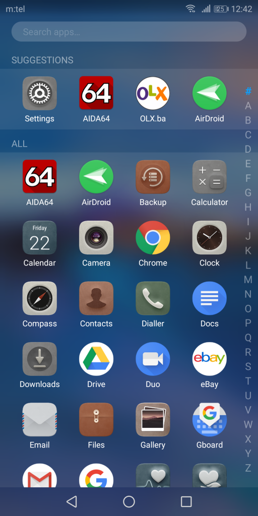 When we’re speaking of software of the Mate 10 Pro, everything runs great as well. Huawei shipped the Mate 10 Pro with the Android 8.0 Oreo preinstalled, and onto it placed their own EMUI 8.0 user interface which we all know very well, and in this iteration it looks even better. Something that the average user will notice first is the lack of the classic app drawer – everything is located on the desktop, you just need to swipe left and right. This, however, can be changed through the settings, so there is an option to set the app drawer. Security patches are dated to November, and the current software version is 8.0.0.127(C432).