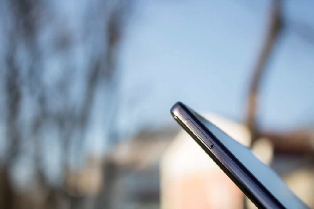 Huawei Mate 10 Pro that we have for our test is BLA-L29 version which comes with a DualSIM tray, and that supports nanoSIM cards. The lack of the 3.5mm headphone port is supplemented by a Type-C to 3.5mm adapter that comes inside the factory box. This means that the port used for charging and data transfer is Type-C version 1.0 with the 3.1 speed certificate.