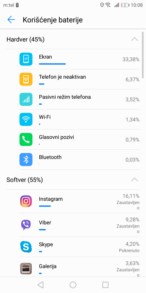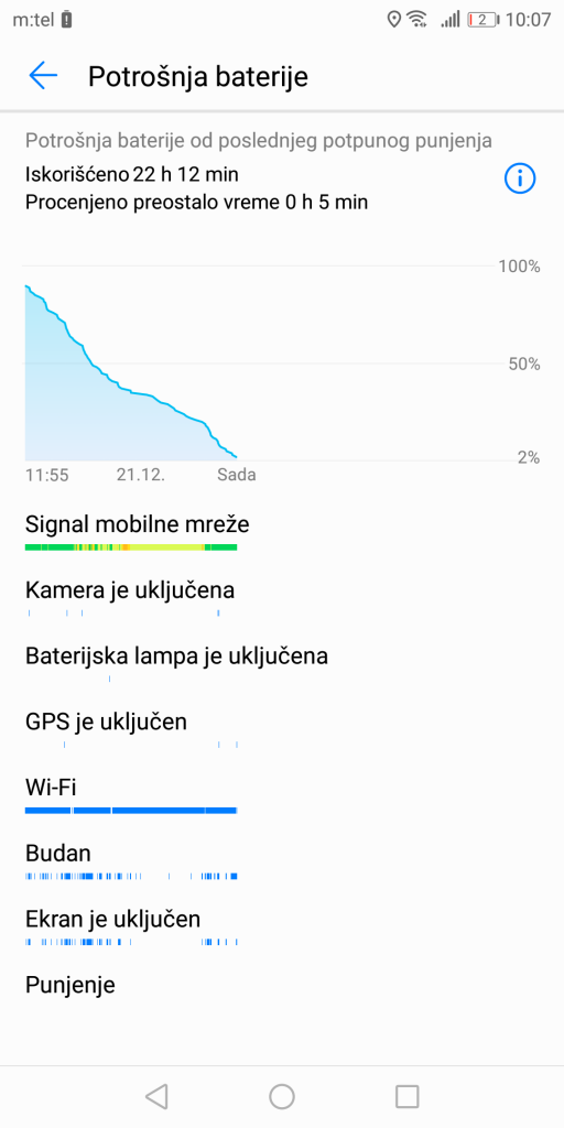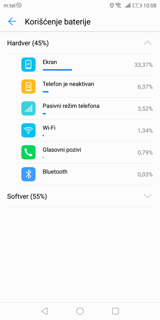 Another great thing in this whole package is the battery capacity – 4000 mAh. This is a non-removable Lithium-Polymer battery, so you won’t be able to freely swap between batteries. All this is the same as in the Mate 10, and if we compare these two to their main contender, the Note8, they bring 700 mAh more! Amazing! Fast charging is, of course, supported, and it is implemented through the 4.5V/5A adapter that offers up to 58% of the charge in just half an hour. We charged the device to 100% in 1 hour and 15 minutes, and results we got with one full charge are: around 23 hours of moderate use with active mobile networks and WiFi and with brightness set at around 70%. SoT (Screen on Time) time is tad under 7h. The power saving mode is also here, and it gets activated once the battery percentage drops down to 15%. Wireless charging is sadly not here, although the back of the device is built of glass, which is a basic prerequisite that makes the implementation possible.