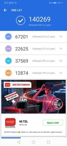 It is a very comfortable experience using this phone as everything works quite well. High demanding games maintain stable 30 – 60 fps framerate on medium settings, however in some games, such as PUBG Mobile, some glitches are noticeable on rendered objects, and we believe that the issue here is with the still unsupported and new chipset. On the synthetic AnTuTu benchmark the phone scored 140000 points which is more than just a decent score for a mid-ranger.