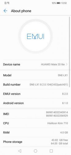 Out of the box this phone comes with Android 8.1 Oreo preinstalled over which there is the EMUI 8.2 user interface. There you can find a lot of customization options, themes, antivirus, as well as a facial mapping unlock system.