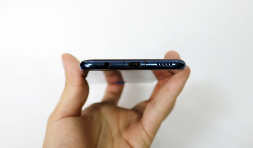 This phone comes in several available versions, and our SNE-LX1 version has a hybrid SIM card slot that can store either two nano-SIM cards or one nano-SIM and one microSD storage expansion card, that supports expansions up to 256GB. On the bottom there is the good old 3.5mm headphone port, and NFC is also supported. The LTE Cat.12 modem is here and it enables download speeds up to 600 Mbps and upload speeds up to 150 Mbps. This phone uses a Type-C cable for charging and data transfer.