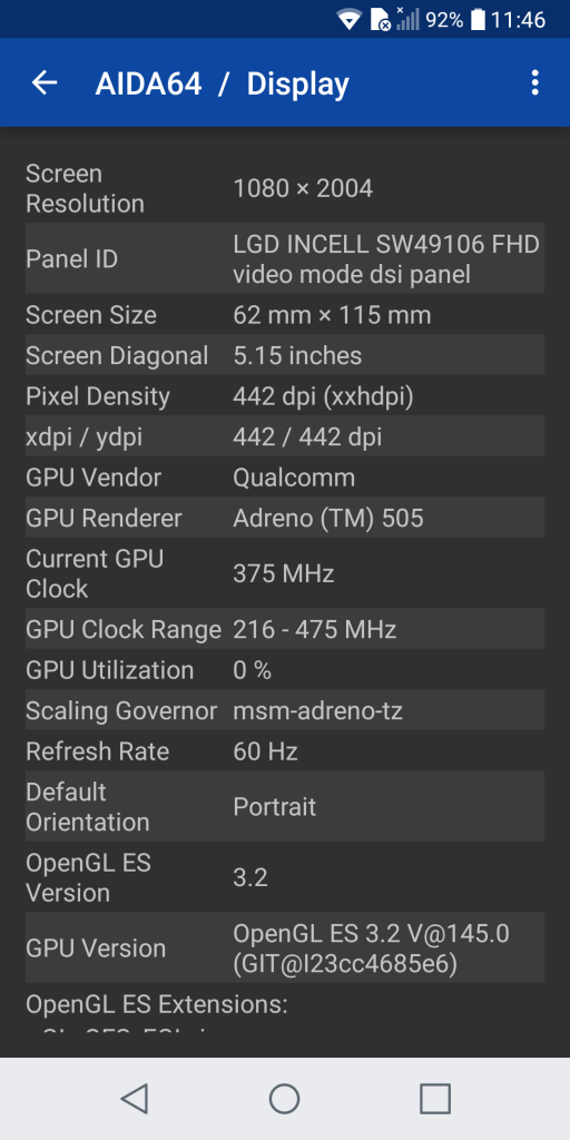 The display of the Q6 is probably the most interesting thing about it, considering this is a middle class device. I has a 5.5” FullView display with FullHD+ (2160 x 1080) resolution. This results in 442 PPI. The screen-to-body ratio is about 78%, while the aspect ratio of the display is 18:9. While the competitors often step up their game and choose AMOLED displays, LG has opted for the IPS panel for the Q6. Corning Gorilla Glass 3 is there to help protect the screen. Due to unusual aspect ratio, LG has prepared App Scaling option, which serves to adapt all applications to different resolutions – Compatibility 16:9, Standard 16.7:9 and Full Screen 18:9.