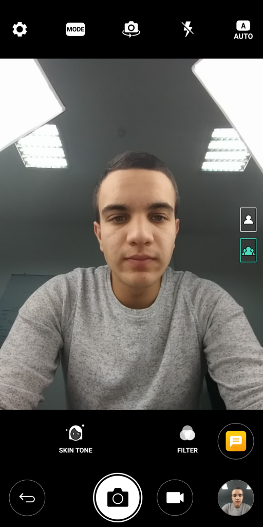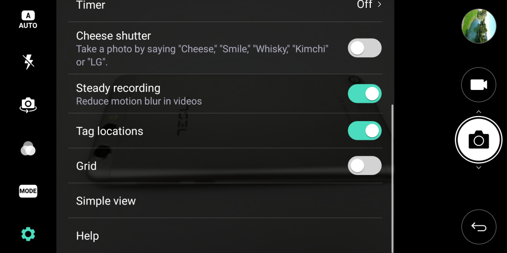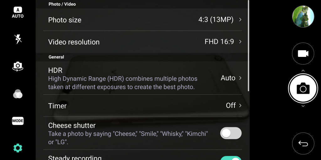 The 13MP main camera on the back provides pretty good photos, with nice sharpness and vivid colors. Next to the camera, there is an LED flash, the aperture is f/2.2, and it will allow plenty of light reach the CMOS sensor. We could also see one of the options that were present in the G6, the “square mode” which will separate the display into two halves, and offer viewing of photos from the gallery on one side, while simultaneously offering live shooting on the other. It supports Auto, Panorama, and Food modes. There are also some little green squares, which are, in fact, autofocus points. HDR is supported, and videos are captured in 1080p resolution at 30 frames per second. If you’re on the move, the “Steady recording” option will stabilize the recordings, since this is optical stabilization which is far more advanced than the electronic stabilization. The front facing camera covers an angle of 100°, and it provides very nice wide angle photos and videos.