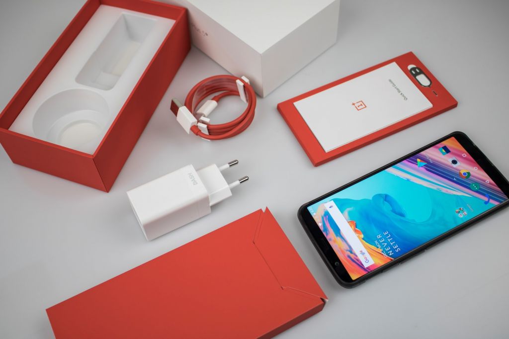 Base models on the OnePlus 3 and OnePlus 5 arrived in June of 2016 and 2017, and updated versions with the T suffix strike a blow to the competitors in November – this year it is no different. Let us introduce the whole new OnePlus 5T! Alright, not exactly. Let us introduce the redesigned OnePlus 5 from June, with a new display and a fingerprint scanner on the back. This seems more appropriate. Although it was unveiled in June when FullView and Infinity Display designs were in full swing, the OnePlus 5 had a classic 5.5” FullHD display with the aspect ratio of 16:9. We don’t say it looked bad, even the opposite, the build quality was excellent and it sat very nicely in the hand, but it just looked the same as the model from 2016. In November 2017, OnePlus fixes things with the 5T. Same as the predecessors, it comes in two memory setups and with a DualSIM tray. What we could find in the factory box of the OnePlus 5T was: user manuals, OnePlus stickers, a SIM tray tool, Dash Charge quick charging adapter and a red USB Type-C cable which, together with the adapter, follows the red color design of the OnePlus 5T. Headphones are still on the list of additional equipment, and if you want them, you’ll still need to visit the OnePlus store. The device is available in two color options: Midnight Black and Lava Red which is exclusively available only on the Chinese market.