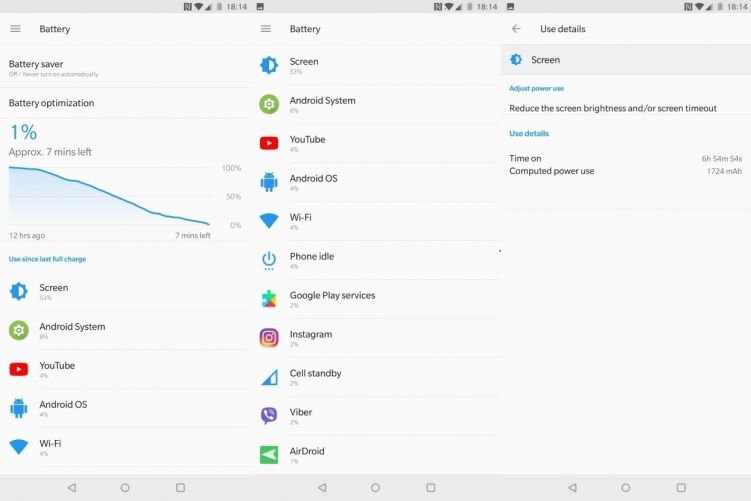 OnePlus 5T uses Dash Charge system that was completely developed by OnePlus and represents one of the fastest ways to charge a smartphone nowadays. OnePlus 5T charging port is USB Type-C 2.0 type. Dash Charge system specifications include 5V/4A and we’ve managed to charge our phone completely, from 0 to 100%, in 1h 10 min. – which is a remarkable result and puts it in the core top of the class when it comes to fast charging. Similar to the previous models battery is non-removable with the capacity of 3300 mAh. To increase battery life there is a Battery Saver option you can turn on manually or wait till your battery life drops below 15% or 5% when it’s activated automatically. Moreover, there is a Battery Optimization option which allows you to adjust your applications to minimum energy consumption by ending all the background processes. In the submenu, as we’ve seen it already on previous models, you can check battery status and see what apps are exactly draining the battery. To be upfront with you, fast charging is a must have for all smartphones nowadays, and new Dash Charge charging speed really does the trick, especially if you’re in a hurry and in a need of a fast charging. You need half an hour to charge battery to 50 % and with the wise use of the phone it can last for a day! Just great!