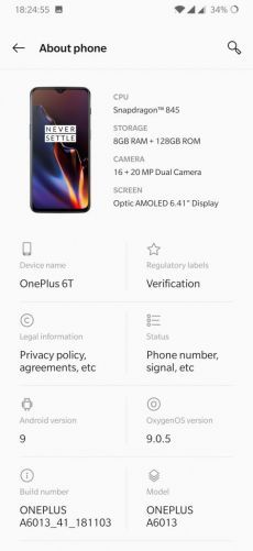 OnePlus 6T Full Specifications