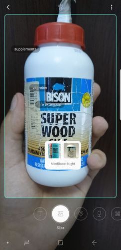 Bixby button is still in the same place and it cannot be reprogrammed. Bixby vision didn’t receive any updates, and as it did in the S9+, it thinks that the wood glue we have here is a bottle of vitamins.