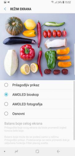 Available display modes are Adaptive display, AMOLED cinema, AMOLED photo and Basic. AMOLED Cinema has a very accurate P3 color profile which is a step above the sRGB.