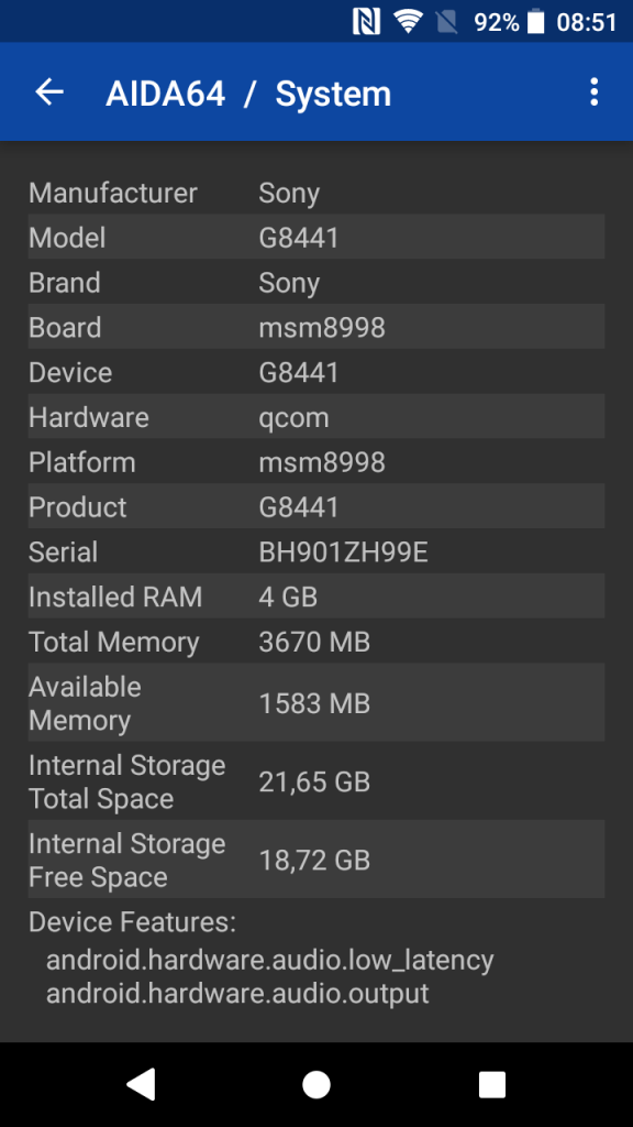 Now we come to, perhaps, the best part of the Xperia XZ1 Compact – the hardware. What makes the Xperia XZ1 Compact unique in the world of devices with the display smaller than 5” is its chipset – the best available chipset, Qualcomm Snapdragon 835. All fanatics and geeks are we well acquainted with this chipset – octa core processor split into two quad core clusters. The more powerful cluster has its cores clocked at 2.45 GHz, while the power saving cluster has the cores clocked at 1.9 GHz. Next to the CPU, we find the powerful Adreno 540 GPU which is still the best Qualcomm has to offer. The Xperia XZ1 Compact comes in only one memory configuration which brings 32GB of internal storage memory and 4GB of RAM. Only 32GB of storage might be a choking point after some time, but luckily the XZ1 Compact supports storage expansions via a microSD card up to 256GB.