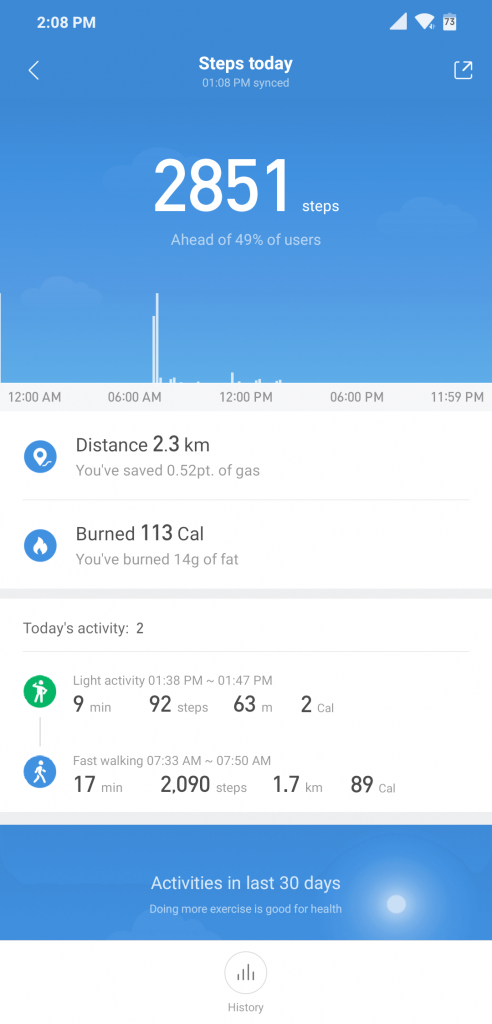It’s now time to say that this band demands Mi Fit application installed on your phone to work properly. All the information tracked by the band are synced with the app, which is where you can find detailed information about your exercises, including average heartrate, peak heartrate, calories burnt etc.